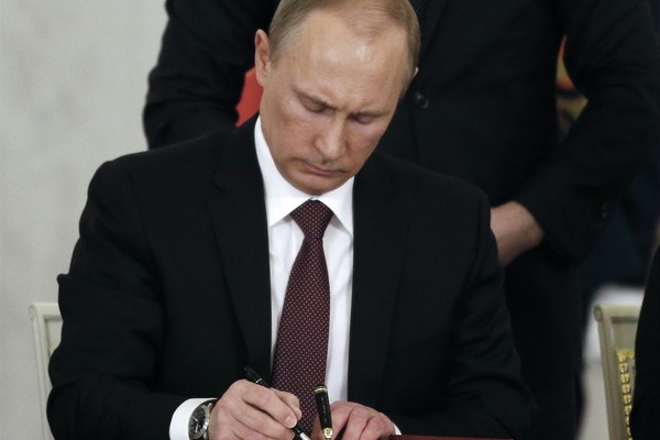 Putin Signs Treaty, Lays Groundwork for Annexing Crimea